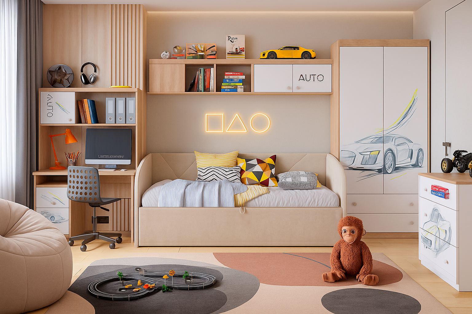 Детский гарнитур Фосаж — софа Бест, полка, шкаф, комод и компьютерный стол